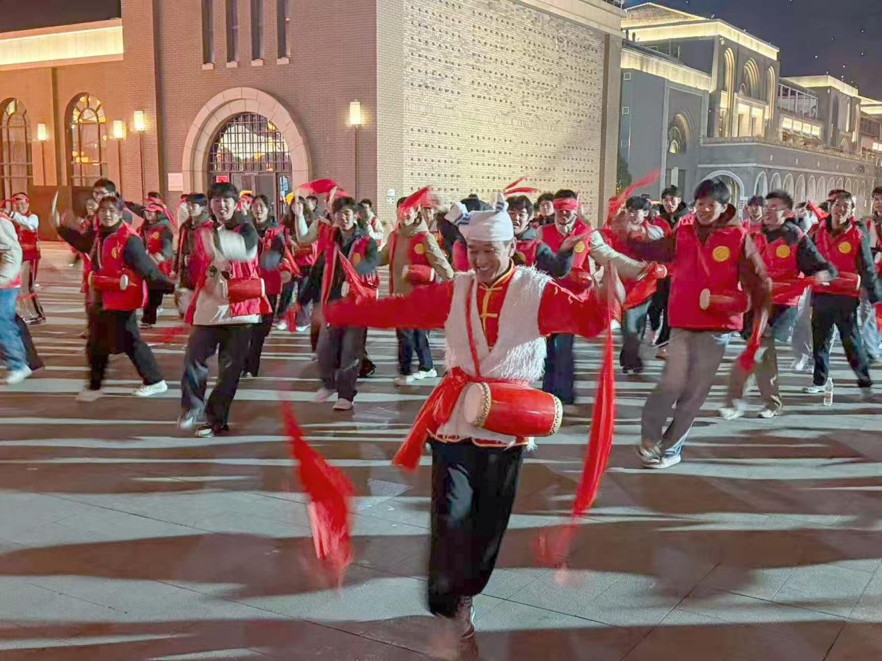 除了现场教学,研学活动还融入了丰富的实践体验。14日晚,师生们在金延安观看了大型红色历史歌舞剧《延安保育院》,剧情感人至深,催人泪下,让大家深刻理解了革命者的大爱与牺牲精神。观演结束后,师生们还参与了陕北腰鼓的体验与教学,在铿锵的鼓点与欢腾的舞步中,切身感受了黄土文化的深厚底蕴与革命老区人民的热情豪迈。在张思德广场,师生们怀着无比崇敬的心情,集体肃立,齐声朗诵毛泽东同志的著名篇章《为人民服务》。“人总是要死的,但死的意义有不同……为人民利益而死,就比泰山还重……”铿锵有力、饱含深情的诵读声在广场上回荡。这堂特殊的现场教学,让师生们深刻感悟“全心全意为人民服务”这一根本宗旨的时代内涵,体悟张思德同志“为人民服务”的平凡与伟大,进一步筑牢了“人民至上”的价值追求。