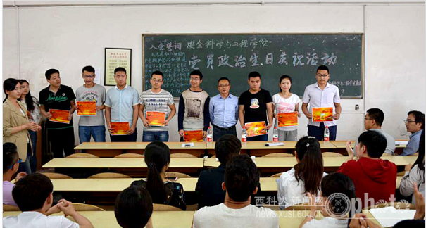 5月19日中午,安全学院党委在临潼校区3212教室举行党员政治生日庆祝活动。学院党委书记杜勇,全体学生党支部书记、本科生党员、高级党校学员150余人参加了活动。