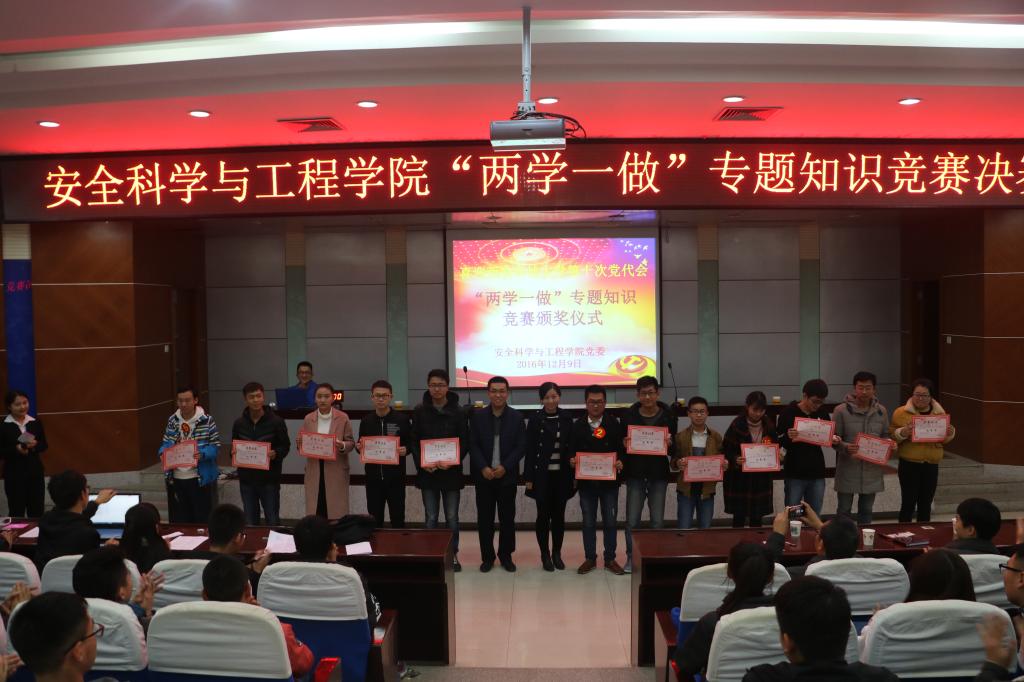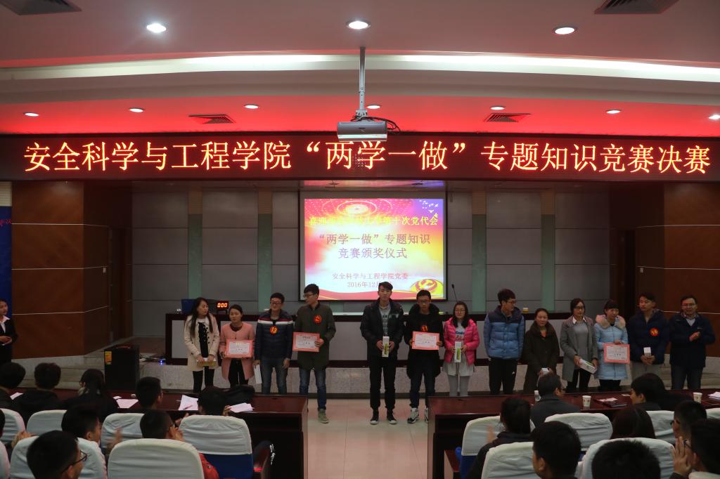 为检验“两学一做”学习教育成果,提高学生党员党性修养,明确责任使命、营造开拓进取良好氛围,在西安科技大学第十次党代会胜利召开之际,安全学院“两学一做”知识竞赛决赛于12月9日在临潼校区图书馆报告厅顺利举行。