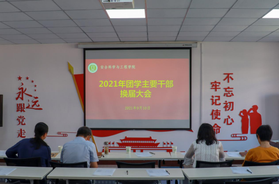 9月10日,安全学院在骊山校园14-320会议室举行2021年团学组织主要学生干部换届遴选面试,安全学院党委书记杜勇,党委副书记田园,团委书记郭胜忠、团委副书记曹月,辅导员王倩、袁刚,团学干部、班团干部代表担任评委,经过笔试考察的15名学生干部参与换届遴选面试环节。