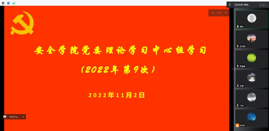 执行院长罗振敏,副院长肖鹏,副院长、消防工程系党支部书记马砺,应急技术与管理系主任郑学召,学生工作办公室主任、团委书记周学刚等5名同志分别结合自身实际,围绕学习内容,进行交流发言。他们纷纷表示,要认真学习宣传贯彻党的二十大精神,始终心怀“国之大者”,弘扬伟大建党精神和延安精神,坚持社会主义办学方向,落实立德树人根本任务,深入实施科教兴国战略、人才强国战略、创新驱动发展战略,努力培养德智体美劳全面发展的社会主义建设者和接班人,为加快安全科学与工程学科一流学科建设、推进“能源、安全领域世界一流大学”建设贡献智慧和力量。