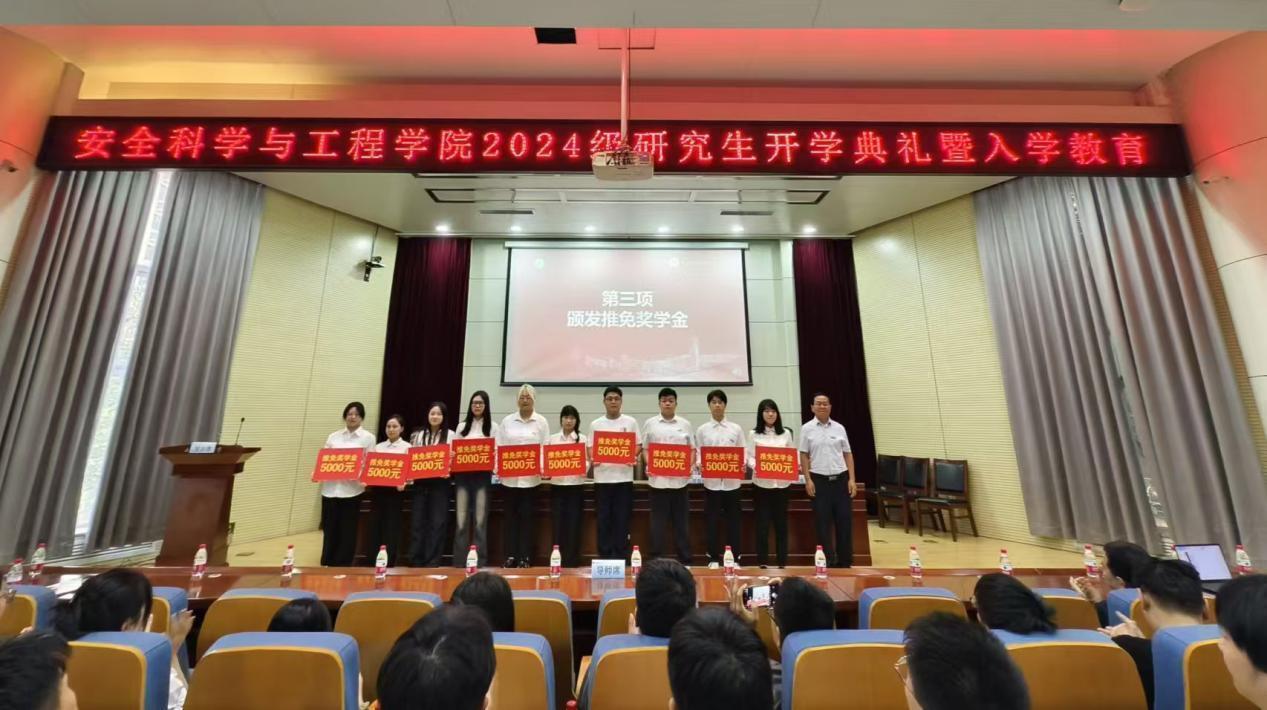 典礼上,成连华宣读了学院2024年推免研究生表彰文件,刘文刚为获奖的19名推荐研究生颁发了奖学金。研究生导师代表张天军、2024级研究生代表王旭东共同签约了《研究生学术诚信书》。研究生导师代表张嬿妮向2024级研究生提出三点建议:要修身养德,先学做人;要坚定理想,走自己的路;要认真生活,积极乐观。在校研究生代表黄罗鑫为2024级研究生送上三个“定力”:厚植报国定力,以强国有我的抱负投身安全事业;坚守成长定力,以脚踏实地的坚定筑牢人生根基;保持学习定力,以永不停歇的求索实现人生理想。2024级研究生代表王嘉慧向全体研究生发出倡议:要立德修身,端正心态;要明确目标,坚定方向;要夯实基础,提升素养。