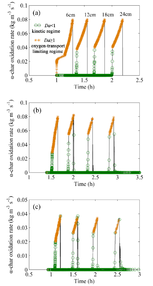 近年来,自维持阴燃已被证明是一种有效的废弃污染物处理新技术,在石油泄漏污染土壤修复、污泥和有机污染物处置等方面得到广泛应用。宋泽阳副教授课题组将前面提出的地下煤火供氧控制-自维持阴燃蔓延模型推广应用至餐余垃圾自维持阴燃处置,通过与前期实验(发表在Fuel Processing Technology,西安科技大学为第一完成单位)结果对比,验证了所提出的模型在含有惰性材料(石英砂)的多孔介质自维持阴燃蔓延也具有良好的预测能力,且进一步揭示了由强鲁棒自维持性至弱鲁棒自维持性阴燃蔓延的动态控制机制(如图3所示)。