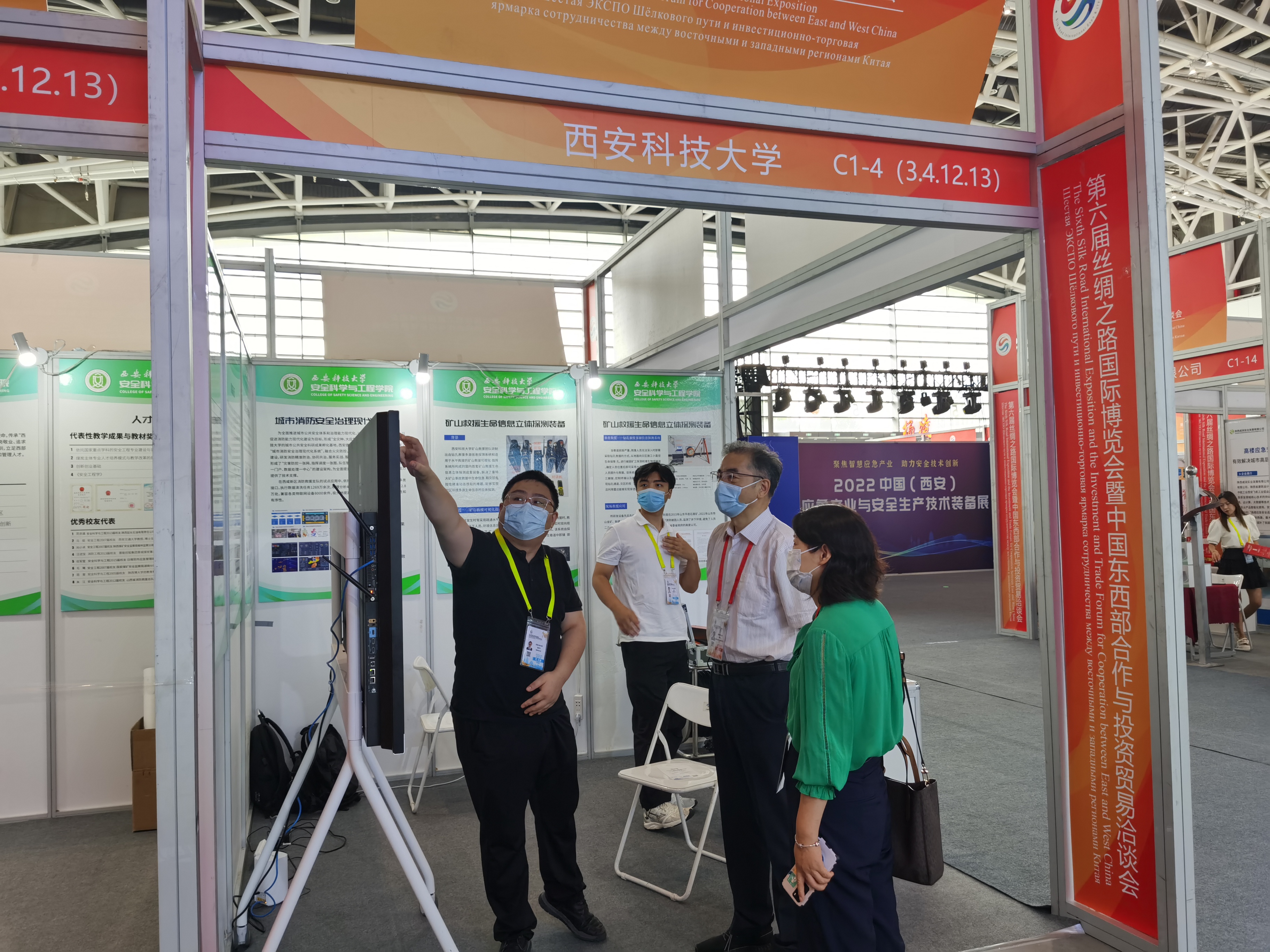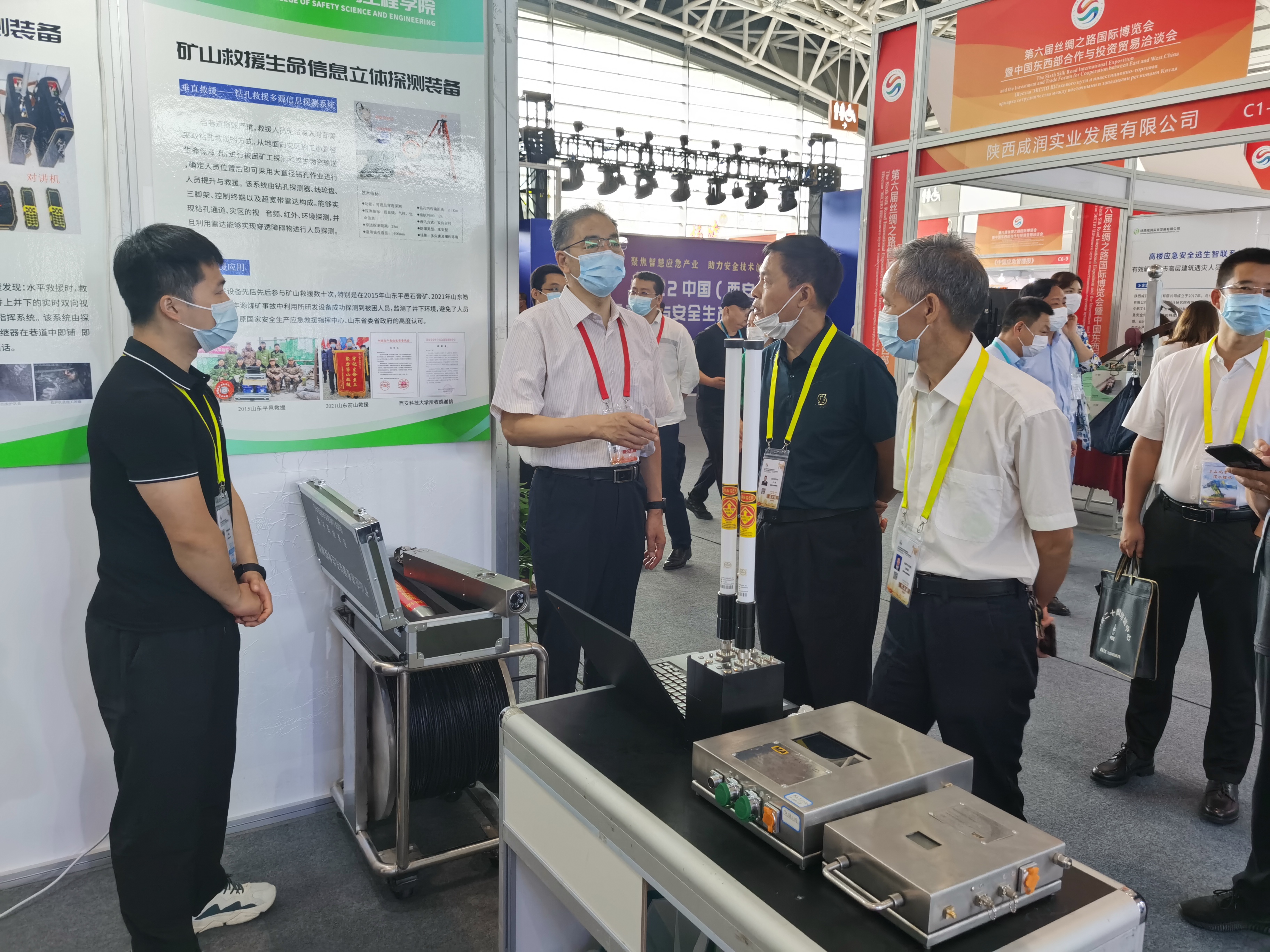 安全学院通过前期征集,遴选推荐了煤矿火灾智能监测预警及管控系统、矿山救援生命信息立体探测装备、城市消防安全治理现代化系统、矿井外因火灾监测预警与智能管控系统、矿井智能通风安全管控平台、建筑施工安全检查与隐患整改信息化平台、瓦斯精准抽采成套技术与设备等10余项科研成果和实物装备参加了展览。各团队准备充分,配备了专门的讲解人员和成果宣传册,通过实物展出、现场演示、体验操作等方式,向参观人员展示了成果的先进性和创新性。