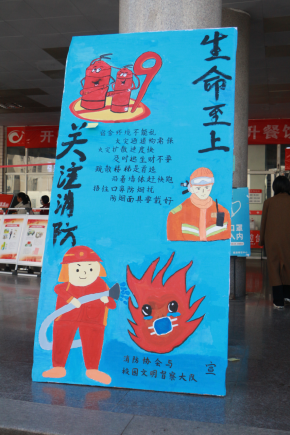 在活动中,消防协会,校园文明督察大队组织调动全校学生对安全学院的海报设计作品进行现场评选,并展出绘画展板,进行宣传标语贴纸活动,发放消防知识宣传单,同学们积极参与此次活动,用实际行动维护消防安全。最后,消防协会参与了餐饮中心和公寓中心对工作人员的消防知识普及和消防实操演练。