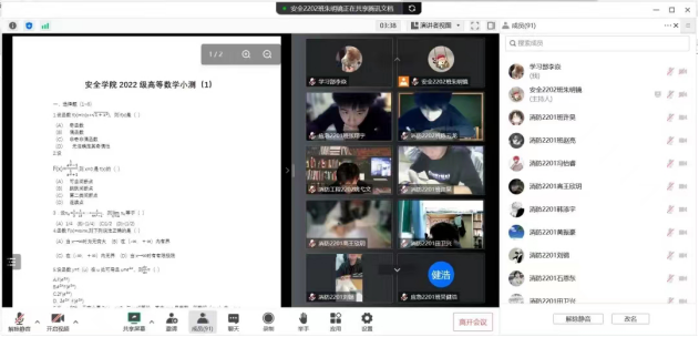 模拟考试采用腾讯会议共享屏幕形式定时发放试卷,学生纸上作答并按时拍照上传。
