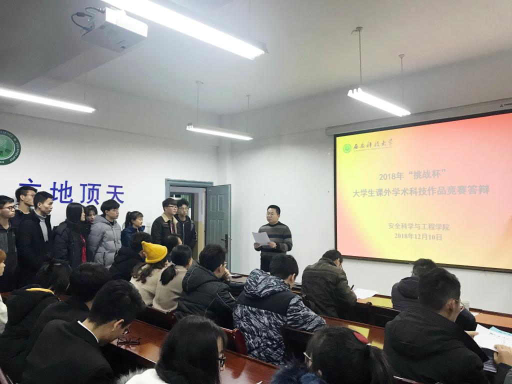 12月10,安全学院在临潼校区学院会议室举行“挑战杯”大学生课外学术科技作品竞赛答辩,安全学院王伟峰、赵鹏翔、肖旸、杨光、程方明五位老师担任比赛评委,44组参赛队伍进行了展示答辩。