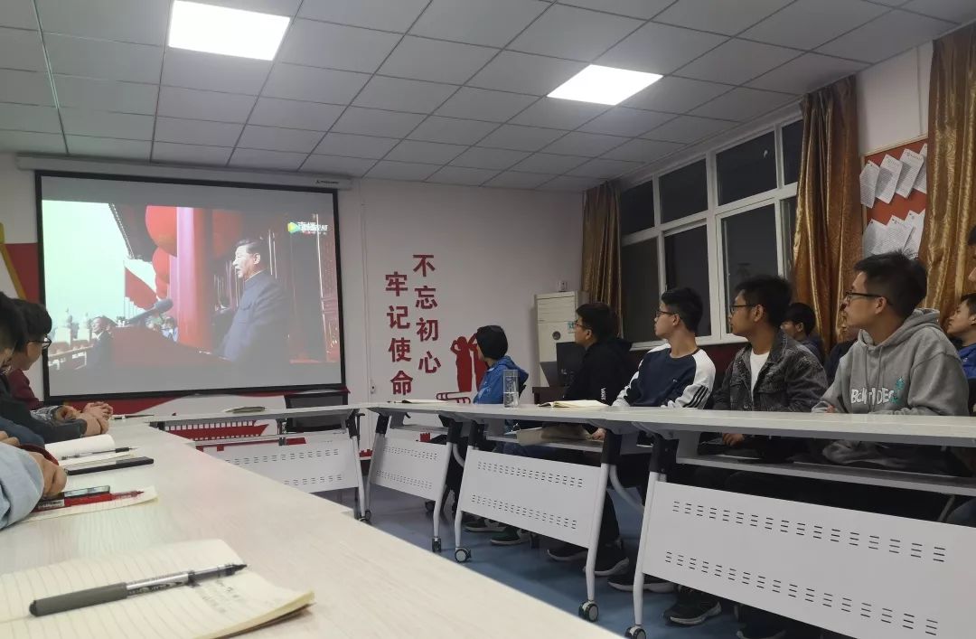 10月10日晚,安全学院2016级、2018级本科生党支部在骊山校园14-319会议室召开党员大会进行“不忘初心、牢记使命”主题教育集中学习活动,重点学习习近平总书记在庆祝中华人民共和国成立70周年大会上的重要讲话精神,党支部全体成员参加了会议。