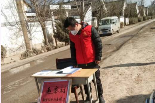 工作内容:协助党员干部在地区封锁期间对过往人员进行信息统计和体温检测,对本村复工人员进行信息登记和报备。