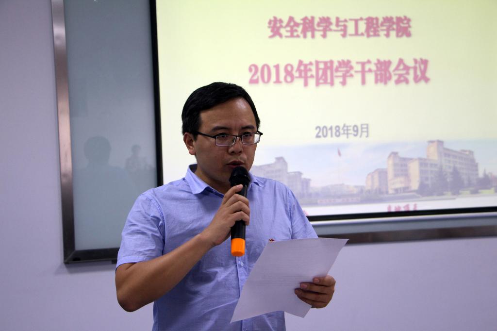 9月21日,安全学院在临潼校区学院会议室召开2018年团学干部会议,学院党委书记杜勇、副书记田园,副院长翟小伟,全体学工干部,团委、学生会全体学生干部,班干部代表120余人参加了会议,会议由团委书记郭胜忠主持。
