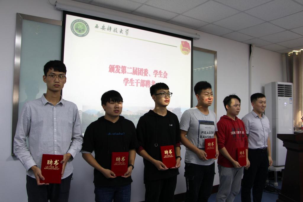 会上,安全学院第二届团委副书记王建安对2017年团学工作进行了总结;党委副书记田园、副院长翟小伟为先进部门颁发了奖状;学院团委委员、辅导员王倩、同超、袁刚分别为第二届学生干部颁发聘书;团委副书记、研究生辅导员曹月宣布第三届团委、学生会主要学生干部任职名单;第三届学生会主席安星虣代表全体学生干部作表态发言。