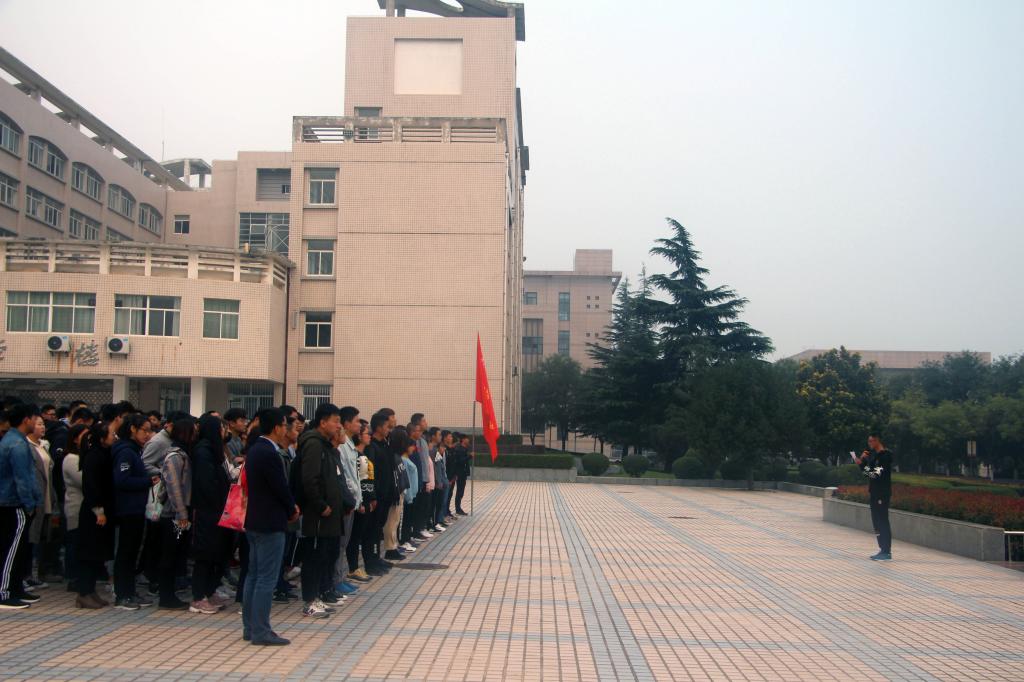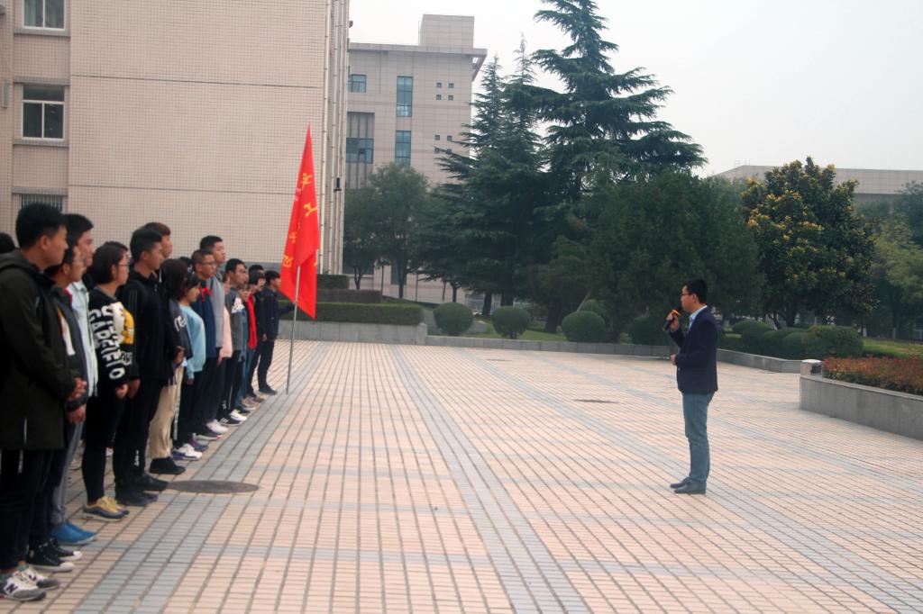 2018年10月15日安全学院在明德广场举行“时代的责任赋予青年、时代的光荣属于青年”主题升旗仪式。2015级辅导员袁刚、学生第一、第二党支部全体党员、安全学院团委学生会主要学生干部、18级全体新生参加。