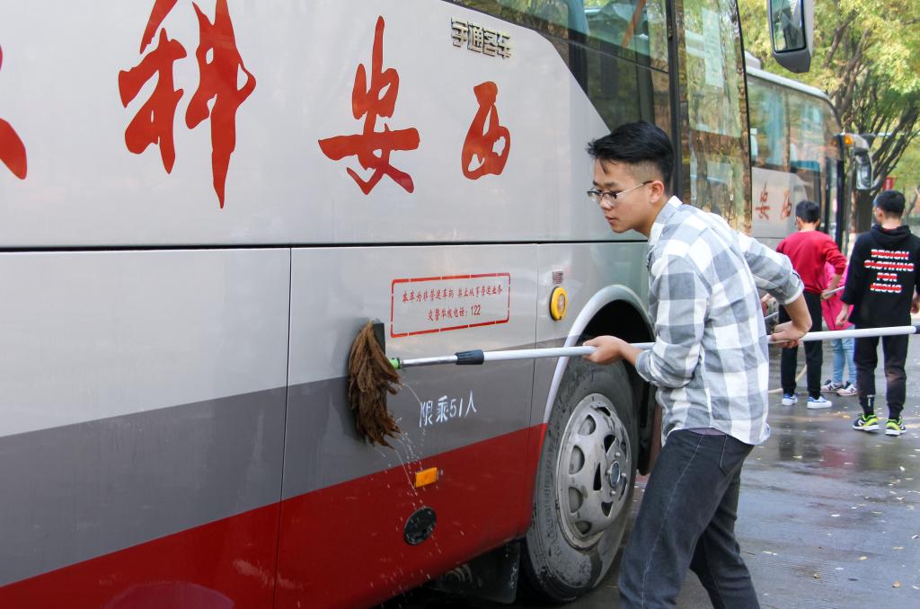 为给广大教职员工提供整洁舒适的乘车环境,同时为进一步激发学生爱校荣校情怀,帮助大学生树立集体认同感、归属感、荣誉感,增强学生“以校为家”的主人翁意识,营造校风文明、学风严谨、爱校荣校的良好育人氛围,提升学生实践能力,11月1 日下午,资产与后勤管理处接待运输服务中心相关工作人员携手安全科学与工程学院辅导员老师、党员发展对象培训班学员、建档立卡家庭学生代表共计40余人联合开展了“爱校荣校,立志成才”清洗通勤运行班车主题实践育人活动,让义务清扫风尘仆仆的校车便成为我们为冬日校园奉献的一份爱心。