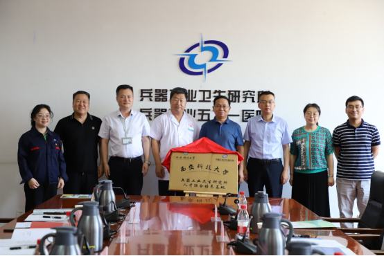 为深入学习贯彻习近平新时代中国特色社会主义思想,落实立德树人根本任务,完善科教协同育人机制,搭建校企协同育人平台, 6月13日下午,安全学院党委书记刘文刚、副院长成连华、安全工程系副主任易欣一行到兵器工业卫生研究所举行“人才联合培养基地” 及 “科教实践基地”揭牌仪式。揭牌仪式由董国强主持。兵器工业卫生研究所科技委主任郭永明、职业安全与健康中心主任董国强、职业安全卫生管理处副处长梁馨月、职业安全与健康中心副主任刘亚杰、相关技术人员参加会议。