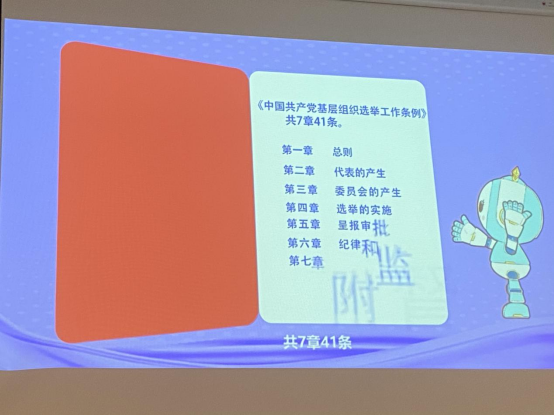 会议计票期间,杜勇组织与会党员学习并解读了《关于做好西安科技大学第十一届党委会、第八届纪律检查委员会候选人预备人选的酝酿提名推荐工作的通知》,并组织观看了《中国共产党基层组织选举工作条例》解读视频。