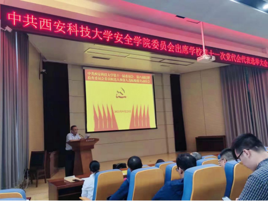 9月23日下午,安全学院党委在雁塔校区北院主楼报告厅召开全院党员大会,选举出席中国共产党西安科技大学第十一次代表大会代表。本次大会应到会正式党员191名,实到会正式党员165名。会议由安全学院党委副书记田园同志主持。