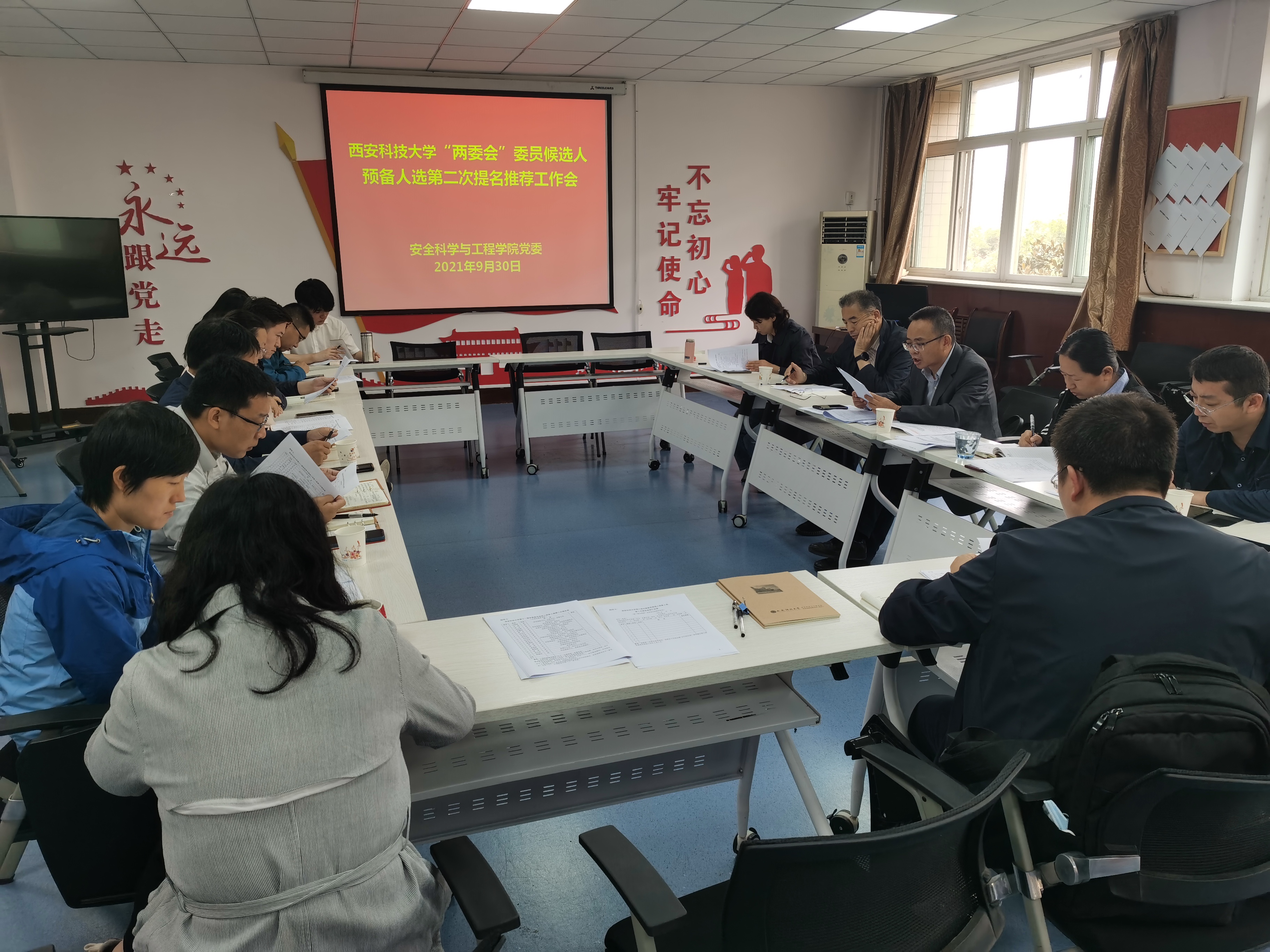 9月30日上午,安全学院党委在临潼校区14号楼党员活动室室召开学院党委委员、支部书记、第十一次党代会代表参加的专题工作会,对中共西安科技大学第十一届委员会、第八届纪委委员候选人预备人选进行第二次提名推荐。前副校长李树刚以第十一次党代会党代表身份参加会议,院党委书记杜勇主持会议。
