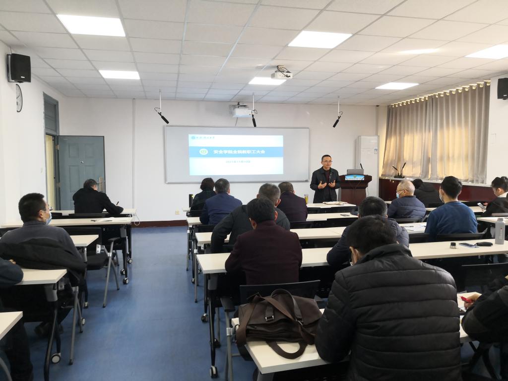 11月10日下午,安全学院在骊山校园14号教学楼504教室召开全体教职工大会,会议由学院党委书记杜勇主持。