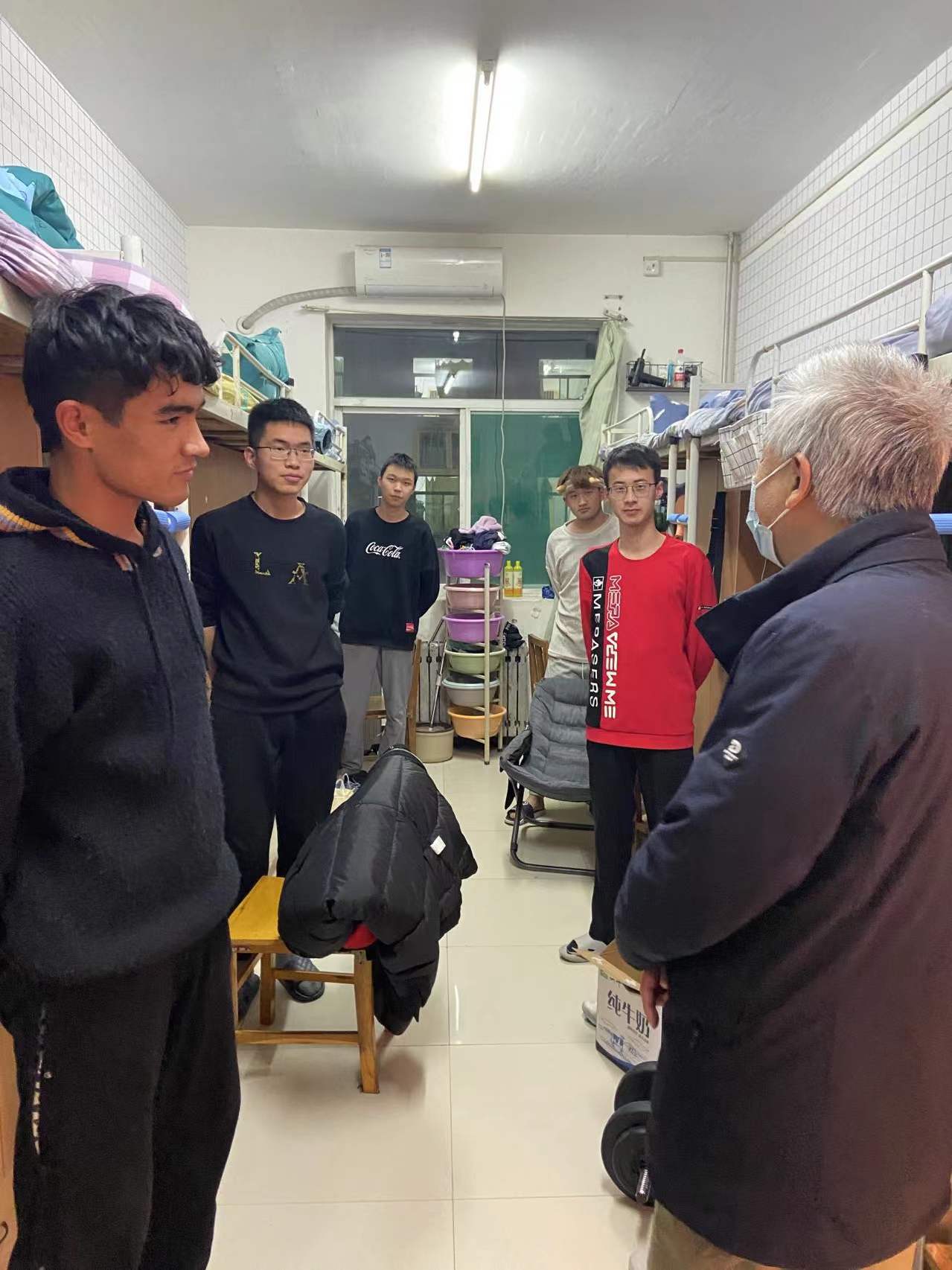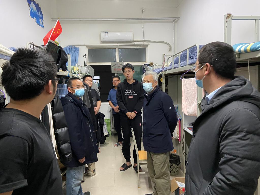 邓军先后来到8号、15号和5号学生宿舍,向同学们致以新年的问候,详细询问了和了解了学生们的学业、考研和就业情况;听取了学生对学校疫情防控、稳定安全和后勤保障等方面的意见建议,并予以积极回应。嘱咐同学们要遵守学校的防疫规定,科学做好自身防疫,做好个人防护,坚决做到不聚集、不扎堆,把学校疫情防控的各项要求落实落细。希望同学们要加强与老师、家长的沟通交流,保持积极向上的精神状态和理性思考的科学认识,将所学的专业与做好抗疫有机结合,增强责任意识,坚定战胜困难的信念信心。祝福同学们在新的一年快乐成长、学业进步,为取得更大成绩、实现自我梦想奠定扎实基础。