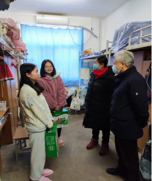 1月30日,虎年新春佳节来临之际,西安科技大学副校长邓军、安全学院党委副书记田园、安全学院学工办主任、团委书记郭胜忠到临潼校区骊山校园学生公寓看望学院全体留校学生,致以新春祝福,并发放了慰问品。