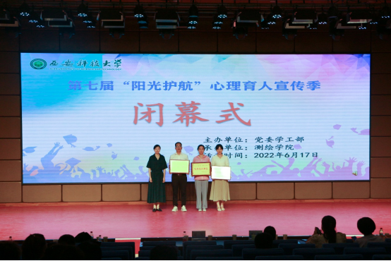 6月17日下午,西安科技大学第七届“阳光护航”心理育人宣传季闭幕式在煤炭科技楼举行,党委学工部心理健康中心对我校心理育人宣传季活动中获奖情况予以通报表彰。我院选送作品荣获一等奖1项、二等奖2项,学院荣获“优秀组织单位”等多项荣誉表彰。