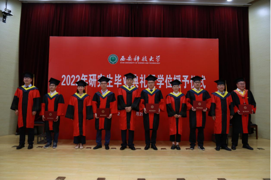 导师代表李树刚教授为全体毕业生送上美好祝福,希望大家将“西迁精神”“学校精神”“精彩精神”身体力行地传递到后续的工作和科研过程中,拼搏奋斗,不屈不挠,以坚定的步伐,一步一步迈向成功。坚持守正创新,读万卷书,行万里路,在各行各业牢记使命,彰显担当,开拓创新,铸造新辉煌,争做西科大有大抱负、大气魄、大本事、大勇气的中国特色社会主义新时代优秀接班人。