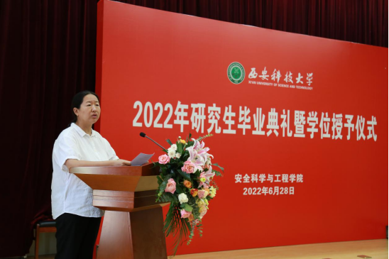 6月28日上午,安全学院在雁塔校区北院主楼报告厅举行2022届研究生毕业典礼暨学位授予仪式。学院党政班子成员、教授委员会委员、导师代表、研究生培养办公室主任、研究生辅导员和2022届研究生参加。副院长成连华主持毕业典礼暨学位授予仪式。