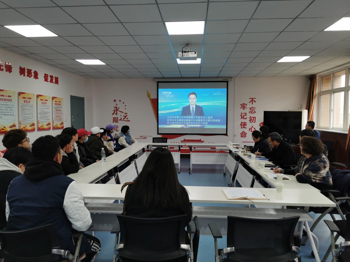 座谈会上,全体与会人员集体观看中央电视台第三次中央新疆工作座谈会视频,学习了习近平总书记在第三次新疆工作座谈会上的讲话精神。
