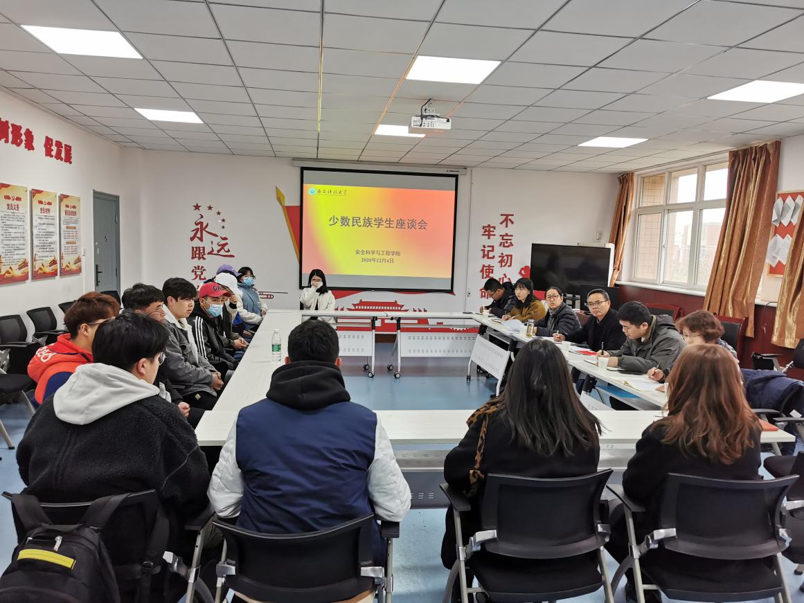 12月10日,安全学院在临潼校区骊山校园320会议室组织召开新疆籍少数民族师生座谈会,校党委学生工作部内派教师石收鸽、康强,安全学院党委书记杜勇、全体学工干部和13名新疆籍少数民族学生参加了会议。会议由安全学院党委副书记田园主持。