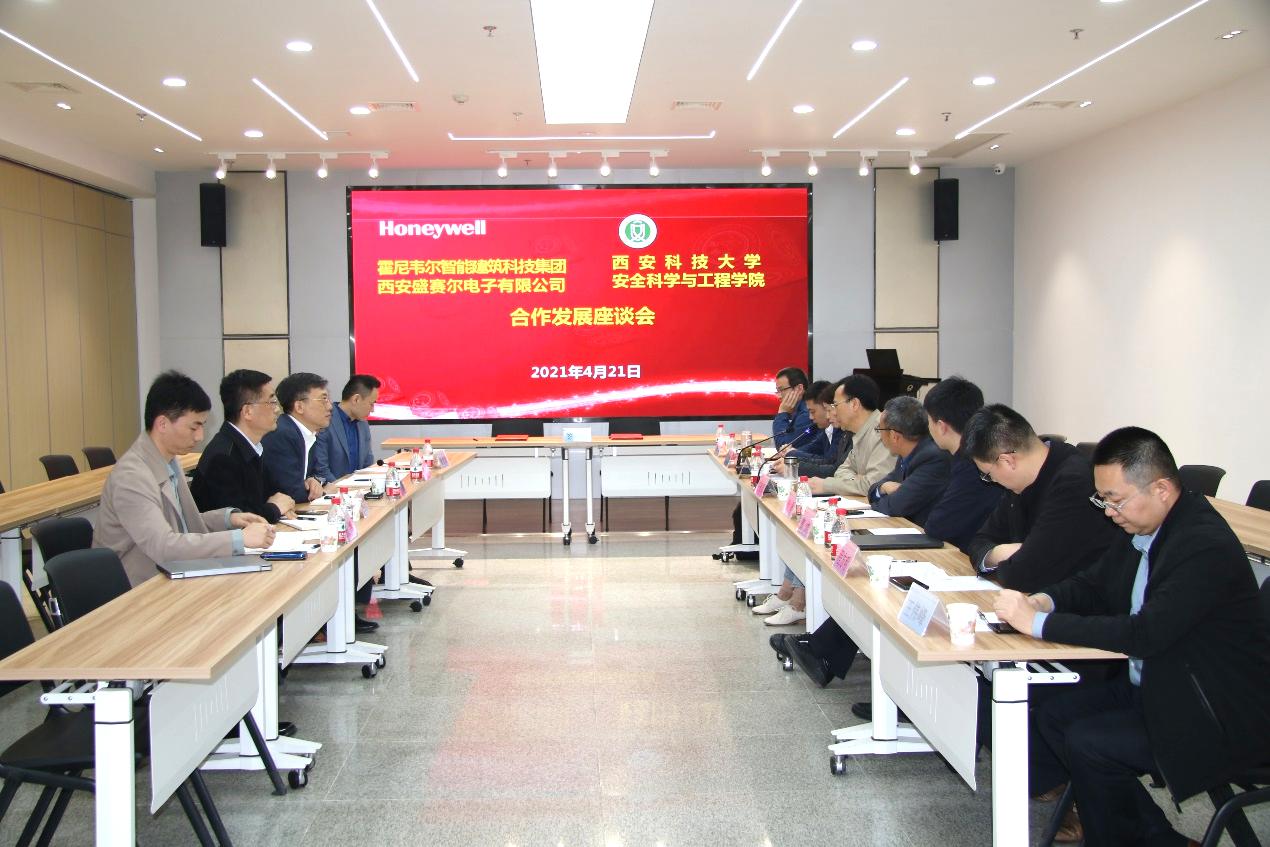 4月21日下午,霍尼韦尔智能建筑科技集团全球副总裁兼中国总经理李烨、霍尼韦尔(西安)有限公司及西安盛赛尔电子有限公司总经理何军、西安盛赛尔电子有限公司市场总监金克、研发总监曾意忠、销售总监张博一行莅临安全科学与工程学院访问交流。我校副校长王贵荣、安全学院党委书记杜勇、副院长罗振敏、曹鸿,消防救援系副主任白磊、院科研平台中心主任程方明、消防救援系教师王伟峰、刘长春等参加座谈交流。