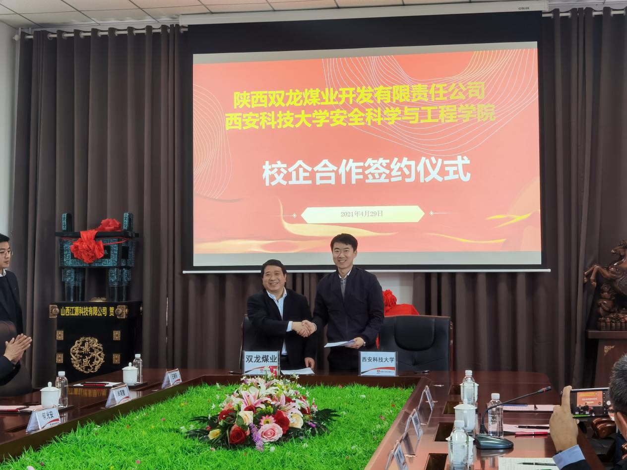 随后,学院副院长曹鸿和双龙煤业副经理、总工程师何光安签订了校企合作协议;学院党委书记杜勇和双龙煤业党委书记丁连水上台进行了校企合作实习就业基地揭牌。