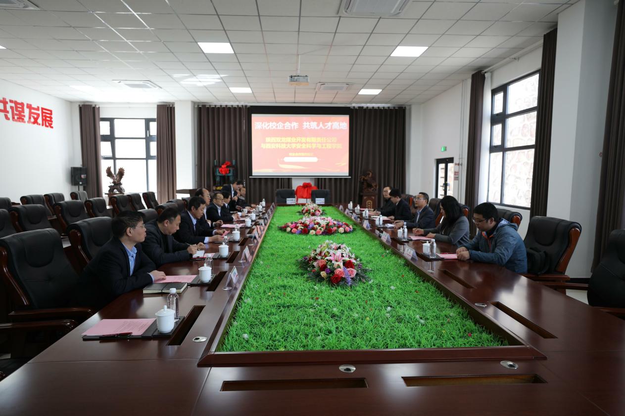 4月29日上午,西安科技大学安全科学与工程学院与陕西双龙煤业开发有限责任公司校企合作签约仪式在双龙煤业举行。双龙煤业党委书记丁连水、财务总监董文治、总工程师何光安、副总经济师马翔、副总工程师尚英智、副总经济师苏忍科、副总政工师王晓阳和校友代表孙练,安全学院党委书记杜勇、副院长曹鸿、安全工程系主任王莉等教师代表一行6人出席签约揭牌仪式。会议由双龙煤业纪委副书记胡双琪主持。