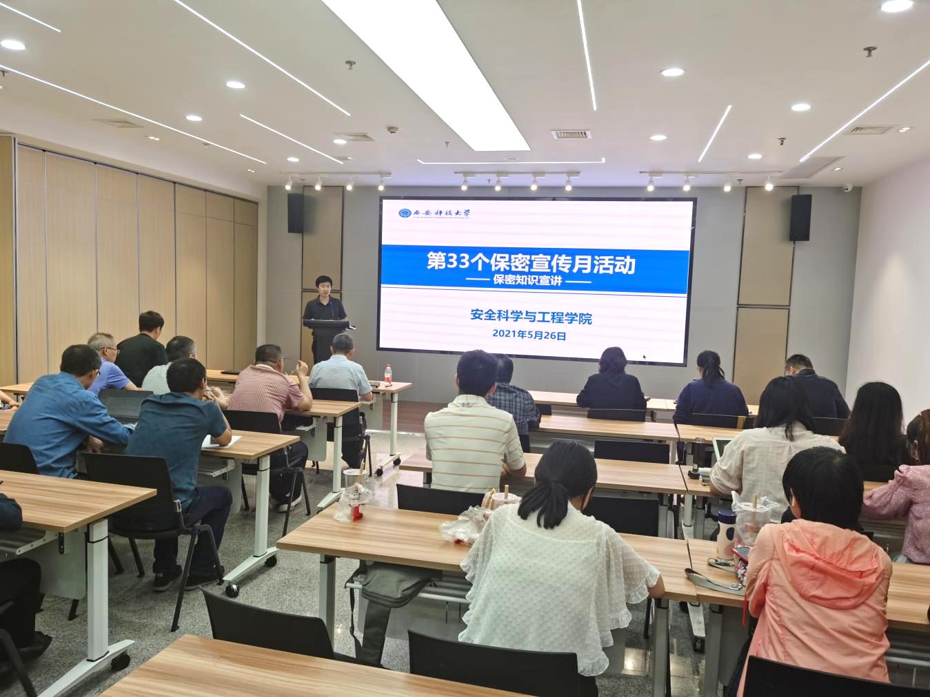 为进一步加强保密法律法规宣传教育,增强广大师生的保密意识,在第33个保密宣传月期间,安全学院按照学校《关于开展第33个保密宣传月活动的通知》精神开展学习教育系列活动,并于5月26日下午,在雁塔校区智慧安全中心开展保密宣传教育活动,全体教职工参加了学习教育。