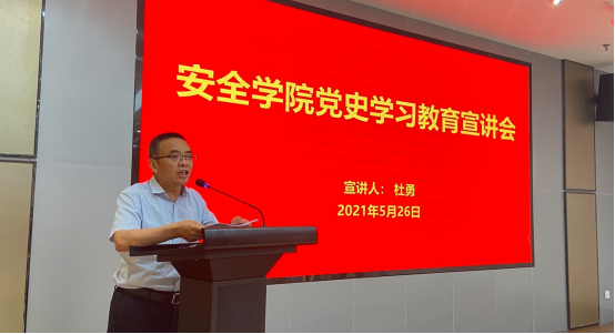 为进一步推进党史学习教育走向深入,根据上级相关指示和工作要求,5月26日下午,安全学院党委书记杜勇在雁塔校区作党史学习教育宣讲,安全学院全体教职工参加宣讲。