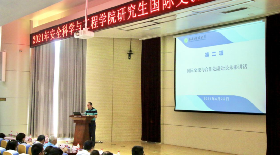为推动我校一流学科建设,提升安全学科研究生教育国际化水平,让研究生更好地了解学科国际前沿信息,培养懂国际规则、有国际视野、有国际竞争力的创新型人才,提高研究生培养质量。6月22日下午,由国际交流与合作处、学科建设办公室、研究生院和安全学院共同主办的2021年安全科学与工程学院研究生国际交流项目分享会在雁塔校区主楼报告厅成功举办。副校长兼安全学院执行院长邓军,原副校长李树刚,安全学院党委书记杜勇,国际交流与合作处副处长朱彬,学科建设办公室副主任孙小娜,研究生院副院长李成峰,安全学院副院长罗振敏、曹鸿,国际交流与合作处和安全学院相关管理干部,安全学院研究生导师代表,安全学院2018、2019、2020级博硕士研究生近300人参加了分享会。