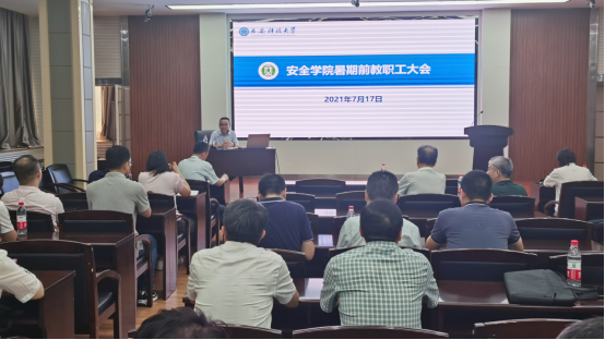 7月17日下午,安全学院召开深入学习习近平总书记“七一”重要讲话精神交流会,学院党政领导班子全体成员和教职工参加会议,学院党委书记杜勇主持会议并做题为《从“七一”重要讲话中汲取奋进力量,努力做好“三全育人”工作》的学习交流报告。