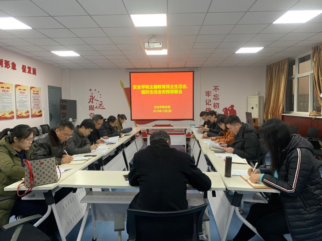 2019年12月2日下午,安全学院在骊山校园14#320室召开学院党委扩大会安排部署主题教育专项工作。学院党委书记杜勇主持会议,学院党委委员、班子成员、各支部书记、组织员、党务秘书参加了会议。