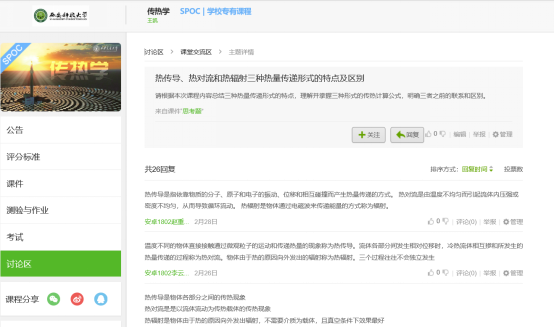 (1)MOOC平台中选用西安交通大学陶文铨院士团队《传热学》教学资源,与我校选用的高等教育出版社陶文铨院士主编的《传热学》教材相匹配,充分发挥了中国大学MOOC平台的资源优势;