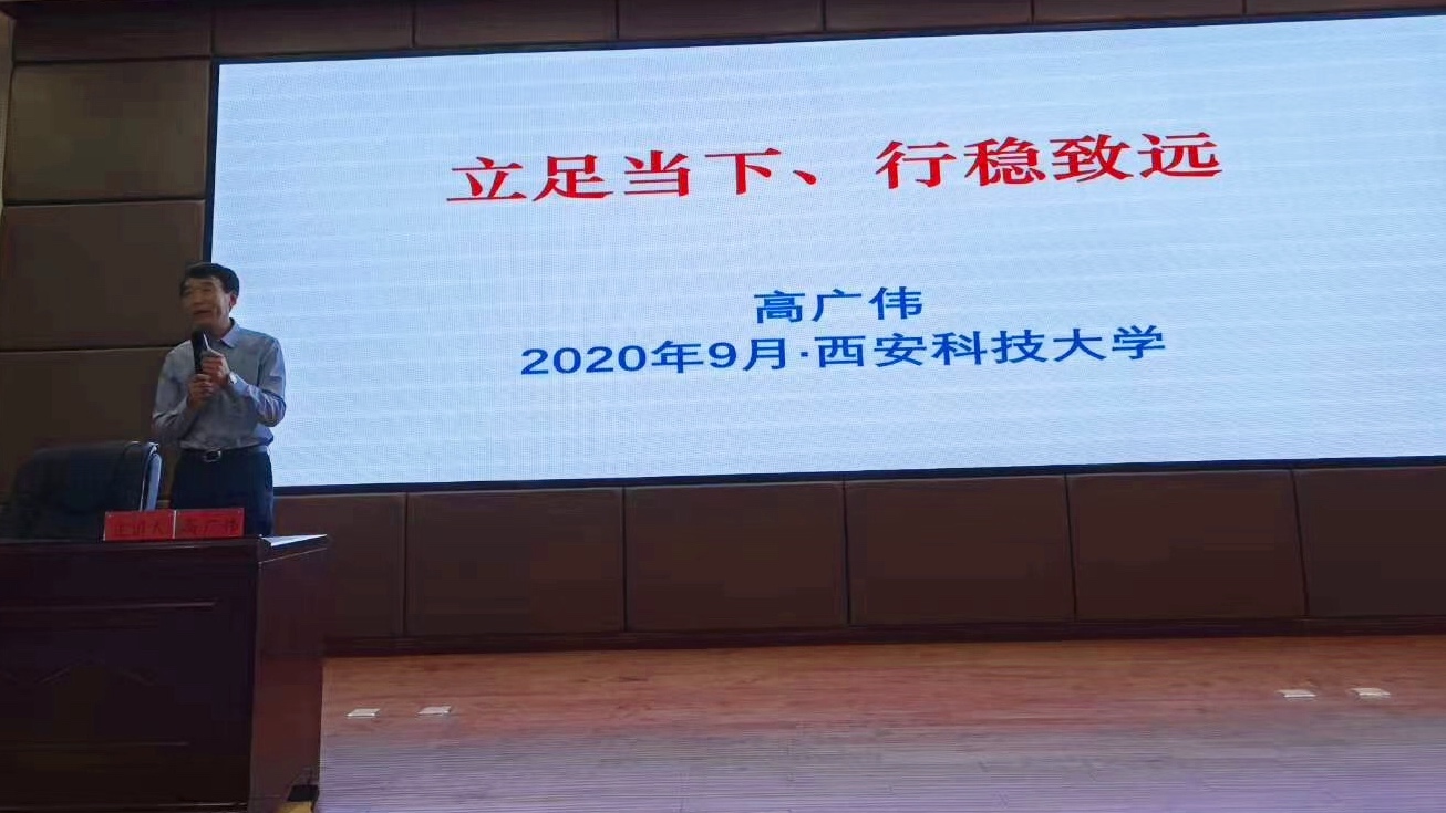 9月21日晚上,安全学院在临潼校区骊山校园煤炭科技中心二楼报告厅举办“安全天地大讲坛”第二十一讲,学院特邀原国家安全生产应急救援指挥中心副主任高广伟研究员做了“立足当下,行稳致远”的主题报告。学院党委书记杜勇、院长邓军,消防救援系博士生导师陈晓坤,消防救援系副主任郑学召,消防救援系教师郭军,2020级辅导员曹月及学生代表200余人参加报告会,会议由杜勇主持。