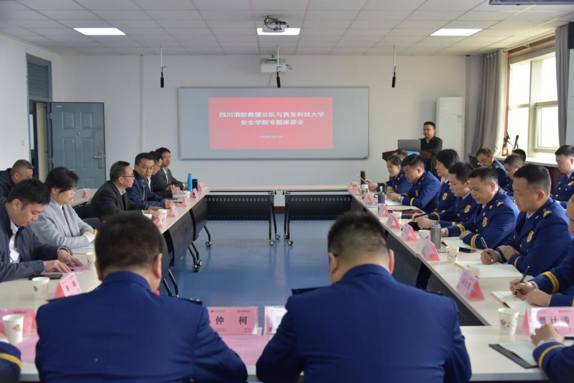10月18日上午,四川省消防救援队伍火灾事故调查业务培训班在西安科技大学临潼校区开班。开班式结束后,四川消防救援总队总工程师陈硕及全体学员与安全学院消防救援系教师代表座谈。座谈会在临潼校区安监学院第六研修室召开。安全学院党委书记杜勇、副院长成连华,消防救援系系主任张嬿妮等10余名老师参加了座谈会。会议由成连华主持。