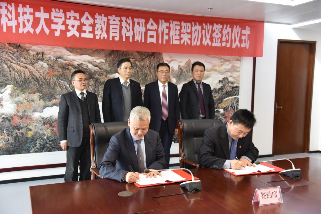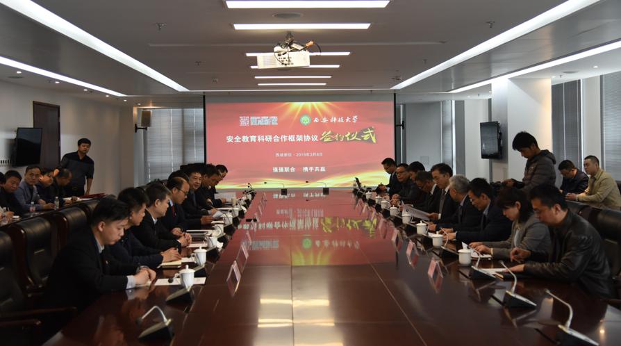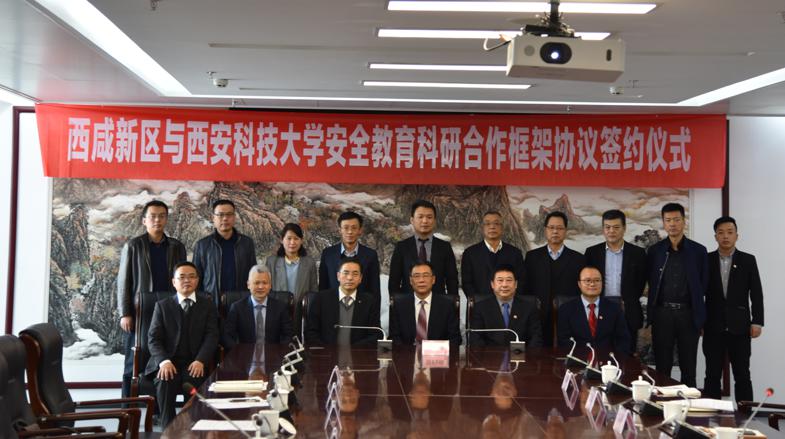 邓军与马忠平分别代表双方签署了《西咸新区与西安科技大学安全教育科研合作框架协议》。