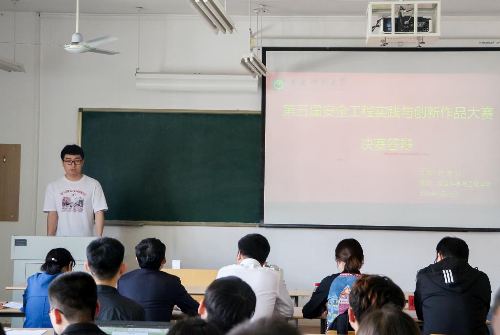 5月10日下午,西安科技大学第五届安全工程实践与创新作品大赛决赛在临潼校区骊山校园14号教学楼举行,安全学院党委副书记田园,院长助理、安全工程系系主任成连华出席观看比赛;陕西煤业化工技术研究院煤炭所安全研发部部长朱兴攀,安全学院安全工程系副主任易欣、实验室主任王亚超、安全工程系副主任赵鹏翔、安全工程系教师严敏担任大赛评委,通过初赛选拔出的24支队伍参加了决赛答辩。