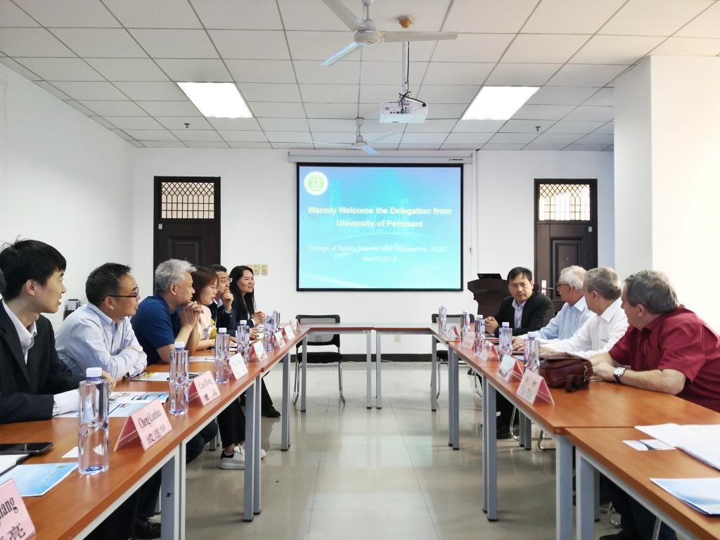 5月10日至5月15日,罗马尼亚彼得罗沙尼大学代表团赴西安科技大学交流访问。访问期间,5月13日上午和5月15日上午,彼得罗沙尼大学校长Prof.Soein Mihai RADU、学术委员会主席Prof.Nicolae 、主管国际事务副校长Roland IosifPĂTRĂŞCOIU等一行3人在校国际交流与合作处处长尚长春的陪同下,到安全学院访问交流。安全学院党委书记杜勇,执行院长邓军教授,科研副院长林海飞教授,行政副院长曹鸿,院长助理兼安全系主任成连华副教授和教师代表出席了座谈会。