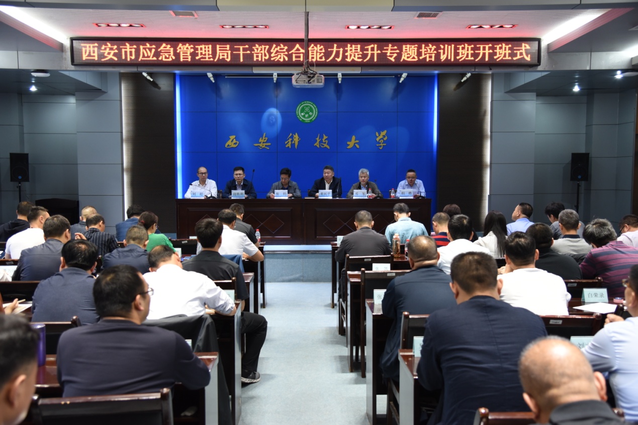 5月20日上午,西安市应急管理系统干部综合能力提升专题培训班在西安科技大学临潼校区开班。西安市应急管理局副局长张钧、段胜利、刘超,西安科技大学副校长来兴平,安全监管监察学院(西安)党委书记杜勇、执行院长邓军,以及来自西安市应急管理系统干部的78名学员参加了开班式,开班式由杜勇主持。