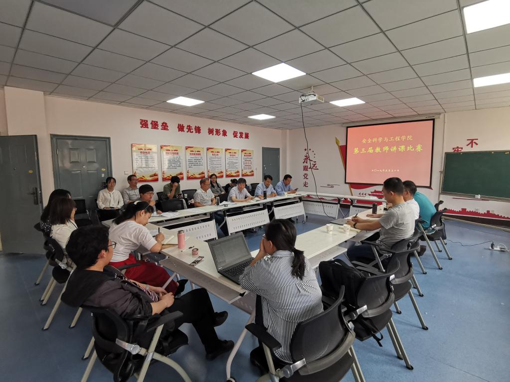 为深入贯彻落实新时代全国高等学校本科教育工作会议精神,坚持“以本为本”、推进“四个回归”,提高专业人才培养能力和人才培养质量,突出特色发展,安全学院以迎接安全工程专业认证为契机,于5月30日在临潼校区14号楼320室举行了安全学院第三届教师讲课比赛,评委组由学院督导专家、并特邀2018年校级讲课比赛获一等奖的建工学院吕园老师担任,组长由张俭让教授担任。学院12名教师参加了比赛,近三年新进教师现场观摩学习。