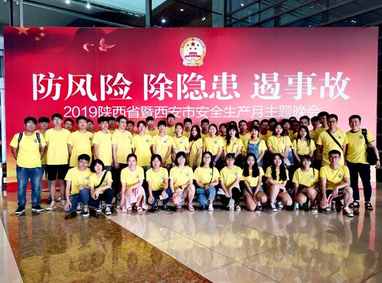 当晚,由省、市安全生产委员会主办,省、市应急管理厅和曲江新区管委会承办的“防风险 除隐患 遏事故”主题晚会在曲江国际会议中心精彩上演,西安科技大学副校长陈春林应邀观看了演出。我校大学生艺术团受邀参演的《中国美》和安全学院师生代表50人组成的观众方阵展现了西科风采。
