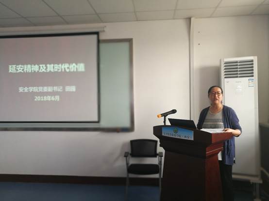 6月14日下午,安全学院初级党校2018年第1期入党积极分子培训班第二讲在临潼校区骊山校园14-504开讲,安全学院党委副书记田园出席并作《延安精神及其时代价值》专题辅导报告,讲座由辅导员同超主持。