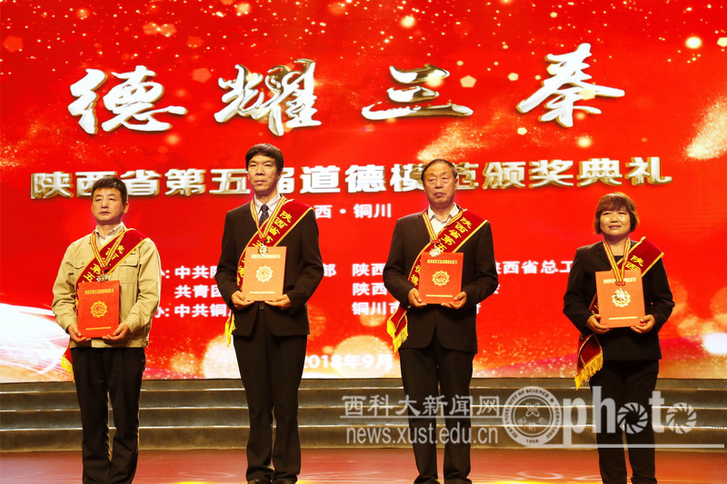 9月26日,由省委宣传部、省文明办、省总工会、团省委、省妇联主办,铜川市委、市政府承办的陕西省第五届道德模范颁奖典礼举行。西安科技大学安全学院文虎教授被授予敬业奉献道德模范称号。此次,全省共表彰助人为乐、见义勇为、诚实守信、敬业奉献、孝老爱亲、自强励志等6类58位道德模范,文虎教授为全省高教系统唯一受表彰代表。25日,省委书记胡和平接见了全体道德模范,并称赞他们为全省的骄傲。