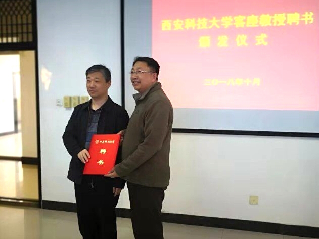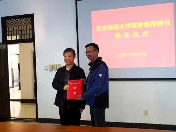 座谈会开始前,蒋林首先向原陕西省消防总队总队长王增华和高级工程师魏东颁发了西安科技大学客座教授聘书。