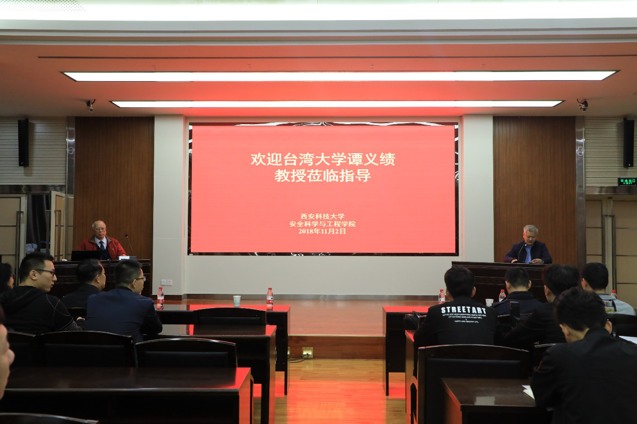 11月2日,台湾大学知名学者谭义绩教授在陕西省政协委员、应急办指导处李芳泓处长的陪同下到我校安全学院参观访问。